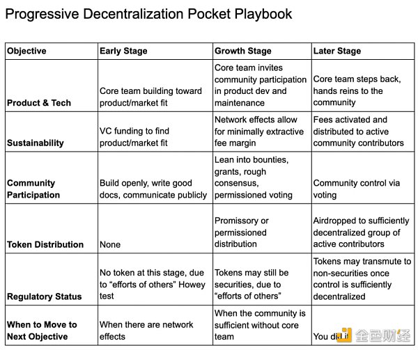 2020 年,A16z 寫了一份關于加密貨幣應用的去中心化的指南,它在 2022 年仍然非常有意義。隨著項目建立產品市場契合度、財務可持續性、參與社區和監管合規性,他們應該尋求減少其中心化。