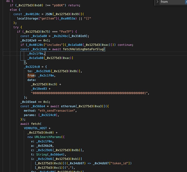 另外這種代碼變量名加密成 _0xd289 _0x 開頭的方式,我們曾經在 play-otherside.org,thesaudisnfts.xyz 這些釣魚網站也見到過。