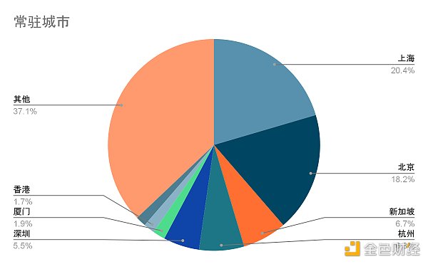在國內,加密從業者主要分布于上海和北京;在境外,新加坡占有相對較高比例,這與我們觀察到的國內加密從業者外遷目的地一致。