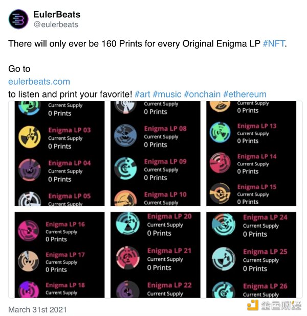 這種格式在 NFT 領域的先驅之一是?EulerBeats?項目,該項目沿著由特定數學公式確定的價格曲線出售(并允許轉售)其 NFT。正如 EulerBeats?文檔所述: