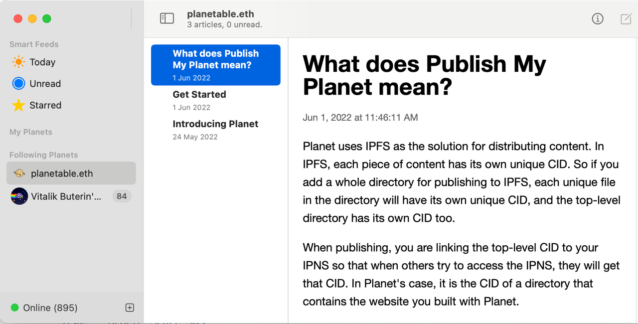 需要注意的是,Web 3不是全能的——雖然在傳播準入門檻上真正做到人人平等,但是內容制作能力和傳播能力方面個體仍會有差異,少數人對多數人傳播仍會是一種歷史常態。以V2EX出品的Planet為例,這是一款內容制作、分享的類博客工具,完全基于IPFS作為存儲后端,但是在其默認界面中,也是以豚林為默認訂閱對象。