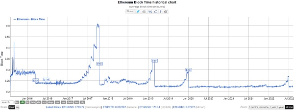 在最近一次的難度炸彈推遲EIP-5133提案中,難度炸彈被推遲到了2022年9月中旬。