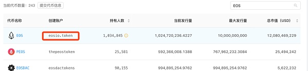 同理,我們在判定其它在 EOS 上發行的 Token 時,也同樣是通過查看合約賬號地址來進行分辨的,如果合約地址不符,那就是假 Token。