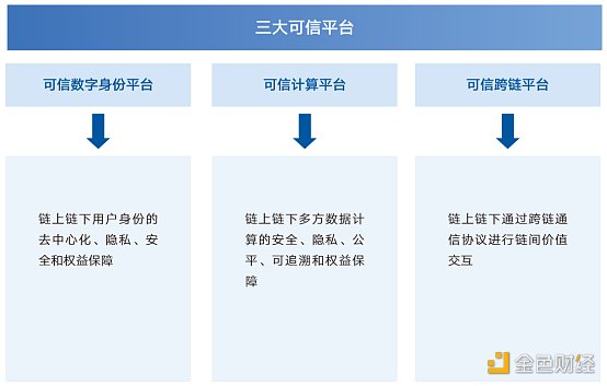 可信跨鏈平臺則通過打通一座座孤立的聯盟鏈上的數據和身份,提供了區塊鏈之間的互操作能力。