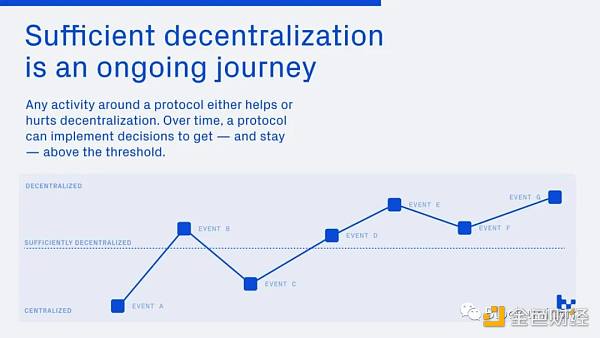 許多初始的開發團隊和社區成員會考慮他們的行動的影響,并詢問一項行動對于去中心化是否有問題,很少行動會有問題; 相反,應該考慮中心化的所有操作。每當有人圍繞協議從事活動時,他們要么幫助要么傷害去中心化。因此,最好的參考框架是去中心化的持續發展。