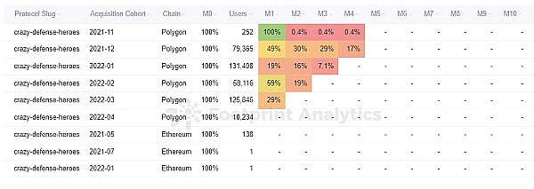 Footprint Analytics - Crazy Defense Heroes Monthly Retention Analysis