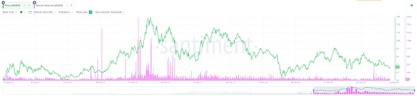Ava Labs(Avalanche 客戶的核心開發者)下一個子網將搭建一個專為機構 DeFi 設計的、具有原生 KYC 功能的區塊鏈,這與 Golden Tree Asset Management、Wintermute、Jump Crypto、Valkyrie、Securitize 等機構的合作相關,“機構的 DeFi 采用”具有良好的話題性,推動 Social Volume 增長。