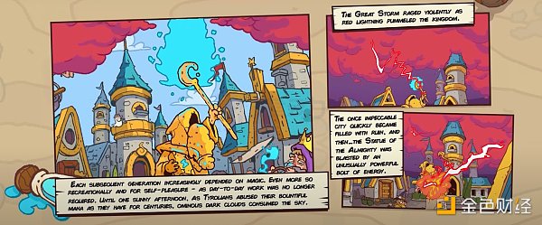 不幸的是,數百年來他們一直在濫用法力,不祥的征兆來了。在一次風暴中一道閃電劈中了王國里的上帝雕塑,隨后大家都慢慢失去法力,蒂羅爾人民失去了信仰,日漸頹廢。