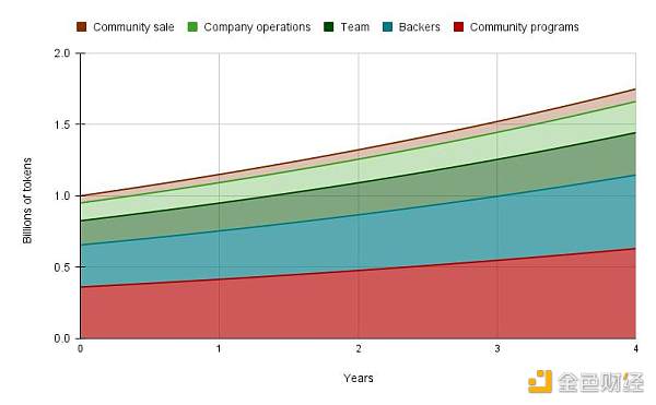 公司運營部分和社區計劃部分的代幣在四年內解鎖。