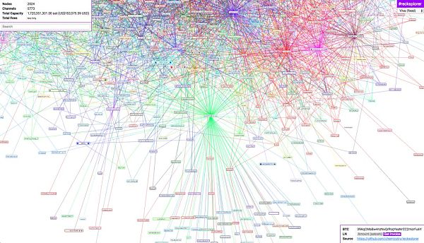 你也可以簡單理解為,在閃電網絡中預存了BTC的使用者可以在額度之內,只需要交易雙方彼此確認,不需要第三方記帳,就能快速實現轉帳和消費。所以,這個預存數字越大,也就意味著可交易的比特幣越多,使用者也越多。