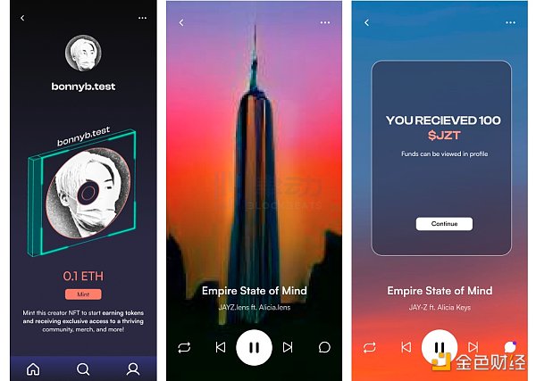 在購買藝術家 NFT 后,聽眾便自動獲得賺取該藝術家 Token 的資格。通過收聽和分享藝術家的音樂,聽眾可以積累各個藝術家的 Token,并可以購買藝術家的各類收藏品,如周邊、早期訪問權和演唱會門票等。