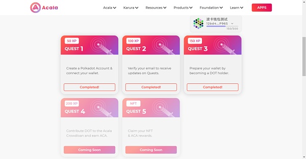 完成“AcalaQuests”任務贏得2%額外獎勵