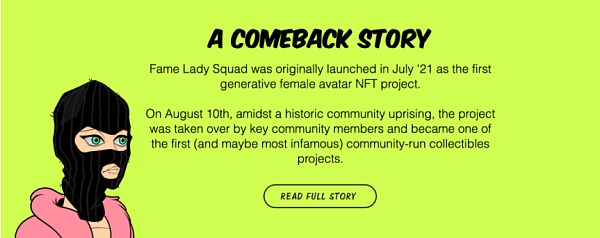 第一個瞄準女性NFT賽道的是Fame Lady Squad(FLS)。2021年7月,FLS打著“首個女性虛擬人項目”的旗號進入NFT市場,幾周內賣完了價值150萬美元的NFT頭像。然而不久后,網友扒出FLS的三個以女性名稱命名的創始人實際上都是俄羅斯的男程序員——FLS女性主義的號召力瞬間瓦解,NFT的價格也隨之暴跌。?