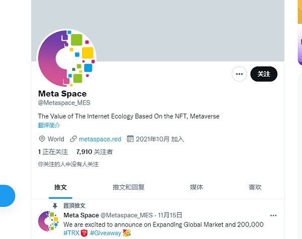 目前,在Twitter上有7879個粉絲對其進行了關注,而置頂推特的轉帖量達到了6831個,互動量達到了5000左右。