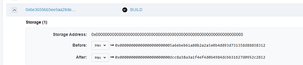 通過查找內部的Storage可見權限轉移給了0x38bce4b45f3d0d138927ab221560dac926999ba6地址而不是上述的0xdcc8A38A攻擊地址。交易哈希為:0xe3525247cea81ae98098817bc6bf6f6a16842b68544f1430926a363e790d33f2。