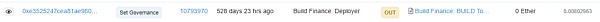 通過對項目的交易追蹤,我們發現2022年2月12日Build Finance?項目被攻擊者竊取了治理權限,接著向0xdcc8A38A地址分三次鑄造了超過10億的BUILD代幣。