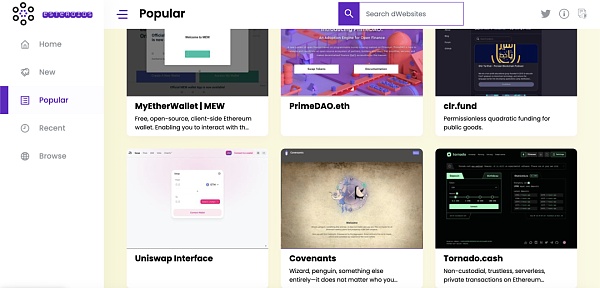 域名被賦予了可編程性后,ENS的用例拓展只局限在開發者的想象力。Scopelift團隊開發的Umbra.eth利用主子公鑰開發了基于ENS的隱私支付系統; esteroids.eth監聽了鏈上ENS域名新解析的網站,呈現了去中心網站的hao123導航;DeFi777讓不支持瀏覽器的錢包也能使用不同的DeFi協議。