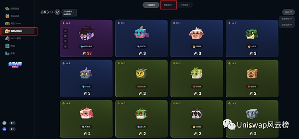 玩家只需擁有三只游戲中的NFT角色——momo,就能參與到MOBOX的各種游戲玩法之中,除了玩游戲,也可以在農場質押momo來獲得mbox空投獎勵,momo分為六個品質等級,(普通、良好、優秀、稀有、史詩、傳說)品質越高算力越高,算力越高獲得的獎勵會更多,momo戰斗力也會更強。