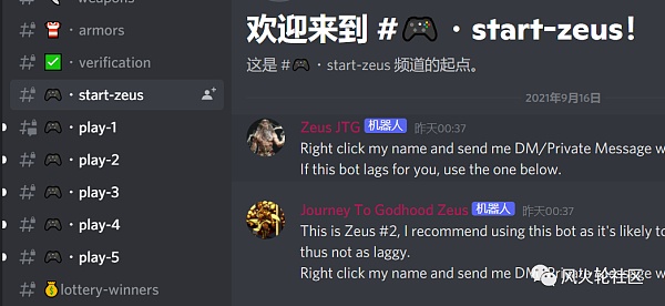 買好后找到下圖的start zeus欄私聊第一個機器人,或者play-12345這些欄目里也行: