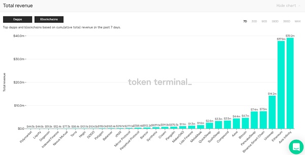 根據Token Terminal的數據,Axie Infinity在2021年7月10日至7月17日期間創造了超過3900萬美元的總收入!