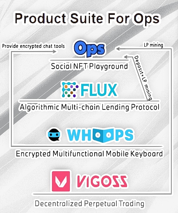 作為Zero One團隊旗下開發的項目之一,OPS與Flux(DeFi借貸)、Whoops(加密輸入法)、Vigoss(算法期貨)有著十分緊密的聯系。