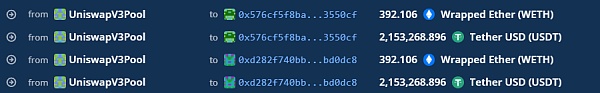 攻擊者使用相同的攻擊方式獲利了多種代幣,以下以USDT為例分析: