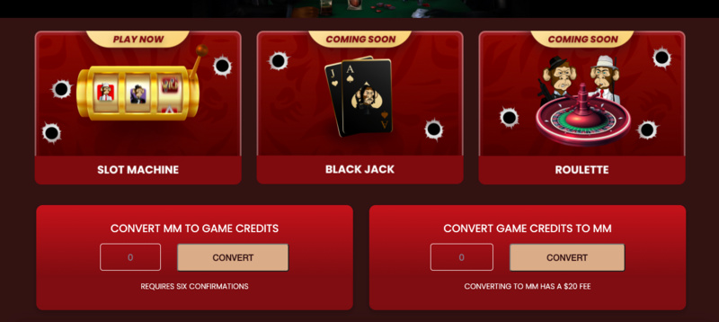 Invariant Labs 開發了一個「菠菜」網站,其中包含 21 點、百家樂、Slot Machine 等三款游戲(官方稱未來將開發更多的游戲);用戶通過 MONKEY MONEY (MM) 代幣兌換積分進行游戲,也可以將積分兌換回 MM 代幣。