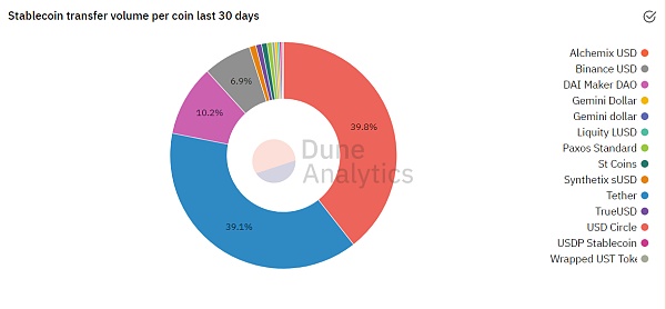 總覽DeFi市場的穩定幣交易量,中心化穩定幣USDT USDC占據著絕大市場份額,原生于DeFi的穩定幣目前的規模還是沒有足夠大,除了DAI之外,其他去中心化穩定幣的體量基本進不了臺面。但由下圖也能看出,去中心化穩定幣的市場空間并不止于此,當去中心化穩定幣足夠成熟,必定會搶奪回中心化穩定幣占據的市場。