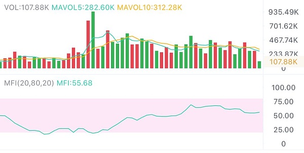 比特幣昨日上沖到6980美金后開始震蕩下跌,在4小時MA83線附近震蕩了很長時間始終無法站穩,今早最低跌到了6480美金。日線MA30線雖然被跌破,但又迅速收回,短期的支撐參考位置可以設在MA30美金附近,日線MFI繼續呈現下行走勢,提示了風險;4小時MA83附近是拋壓較重的區域,也是成交密集區,對后期價格回升產生了較強阻力,近期主要關注這兩個點位即可。