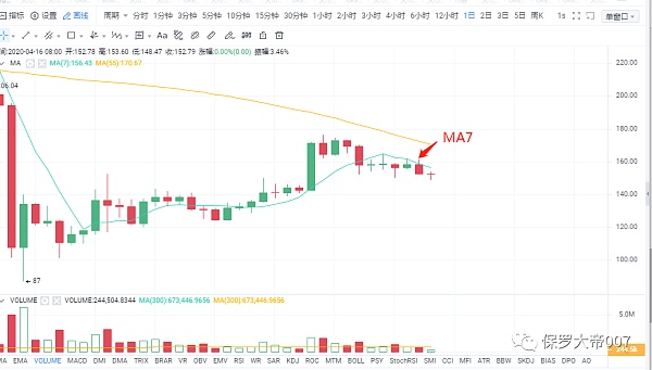 日線級別空頭主宰,MA7的壓制依然明顯,整體還是以回落行情對待。日線未站上MA7、不參與。