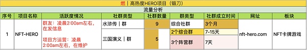 發展狀況:至1月14日上線,粉絲社群用戶強關聯性綁定,存儲游戲方面使用卡牌英雄,戰力值,創新玩法,嫁接游戲到Heco生態鏈上。在當前NFT存儲板塊內,NFT-Hero項目運營,運營人員干勁足,經過1個月沉淀和過度,社群依舊熱度高。