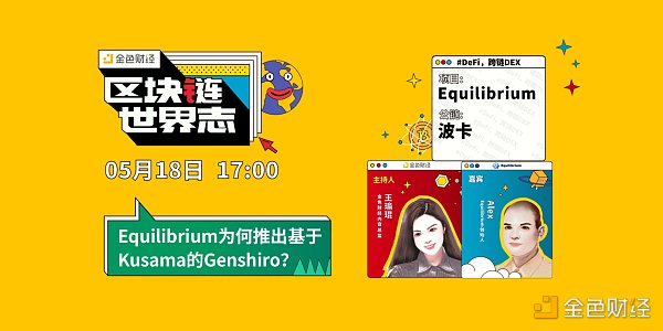 5月18日17:00,金色財經舉辦新一期「區塊鏈·世界志」,邀請Equilibrium創始人Alex Melikhov做客直播間,探討了Equilibrium在DeFi賽道基于波卡和Kusama帶來的創新應用以及發展策略。
