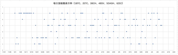 本次火幣活動,共6個減半幣種,一般在沒有系統性風險的情況下,幣種的波動情況不會有大幅改變,因此我們可以通過歷史數據來分析哪些幣種命中的潛力比較大,以便于達到較高的連續勝率。