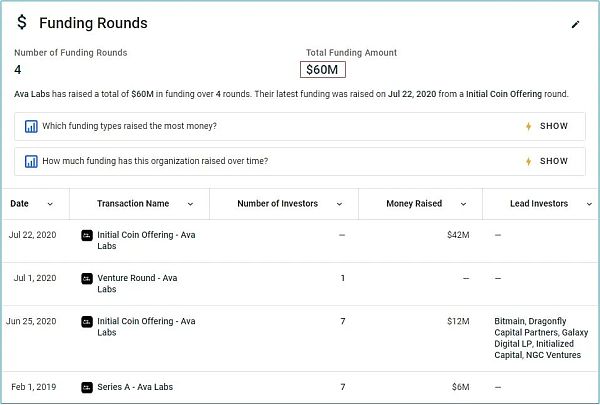 AVAX共經歷4輪融資,共募集6000萬美元。