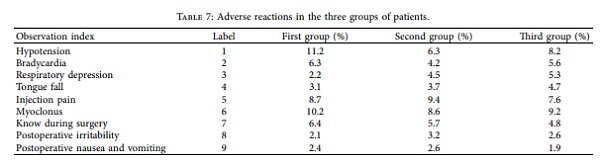 本文設計的智能醫療輔助系統基于智能醫療區塊鏈技術,以幫助指導異丙酚在口腔和頜面部手術麻醉中的應用。本文采用了三組應用和分析策略,觀察在該系統幫助下運用異丙酚進行麻醉的效果,并對相關不良反應進行了排序,具體情況見表7和圖6。