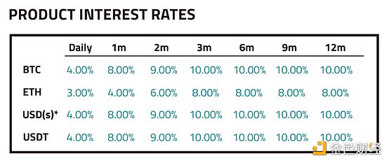 上圖為Amber目前的固定收益利息列表。其中USD(s)是指USDC、PAX、HUSD和BUSD