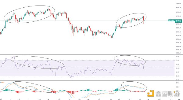 1900/1/1 0:00:00BTC周線目前到了關鍵位置,前頂下降趨勢線點位46000美金、2.618斐波回撤線點位46400美金和55周均線點位45500美金支撐,一旦有效跌穿這一帶,后市走熊概率變大,若能有效支撐.