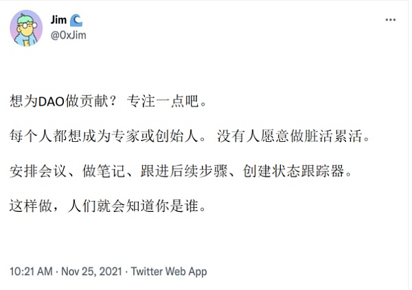 為 DAO 工作的人很少會加入 DAO,然后解決 DAO 的問題。
