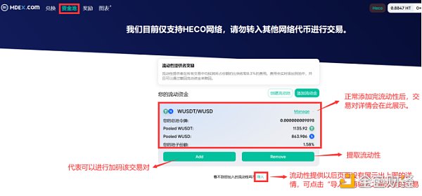 1.官網mdex.com,點擊“去流動性挖礦”按鈕