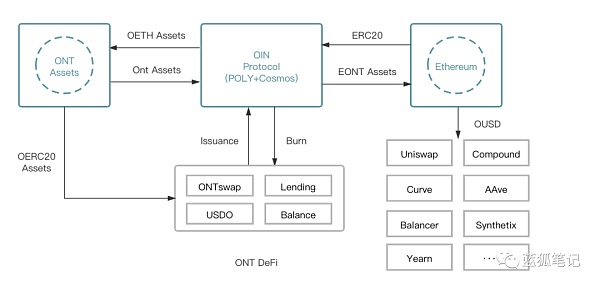 OIN-Chain主要是連接以太坊和本體兩個網絡的資產。如下圖: