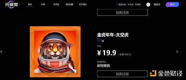 視覺中國則于 2021 年 12 月 26 日正式上線數字藏品交易平臺 「元視覺」,平臺首發作品是為希望工程拍攝的《我要上學》,定價為每件 199 元,限量一萬份,在首發 40 分鐘后售罄。