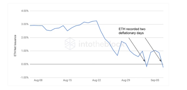 圍繞NFT的大量交易活動,導致兩天內被燒毀的以太坊數量超過了這兩天的發行總量,以太坊總量連續出現了負增長情況。