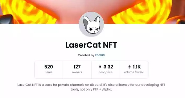Dao/俱樂部門票:NFT KOL LaserCat397 的 DAO 的門票,持有該 NFT 可以進入 LaserCat397 的社群,獲取優質的 NFT 信息。2022 年 4 月 12 地板價也是達到了 3.32ETH。