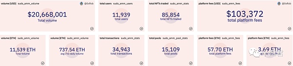 下圖為截止8.20號SudoSwap的核心數據表現。