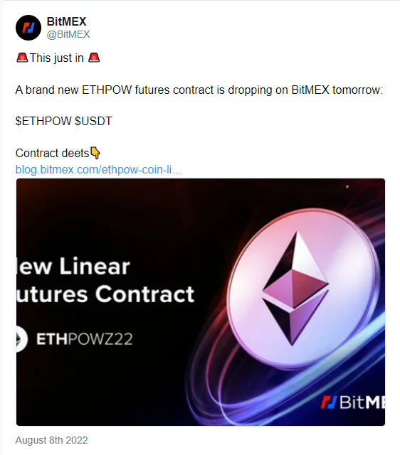 目前已經有以太坊硬分叉 Ethereum- PoW 的陣營在 Twitter 上制造相關輿論, BitMEX 還推出了 ETHPOW 期貨合約 ,讓投資者可以押注這些代幣的未來價格。