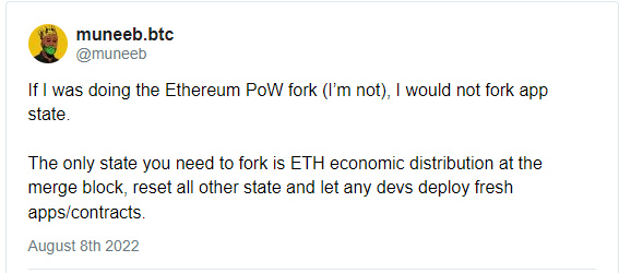 如果硬分叉沒有選擇復制以太坊的完整狀態,而是只是復制以太坊的經濟分布,并允許建設者可以選擇加入并在新 PoW 鏈上部署協議和應用程序,這將使得以太坊生態系統免于遭受可能由合并引發的經濟混亂。