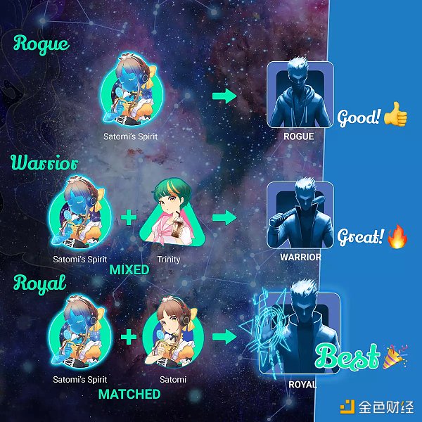 據 DigiDaigaku 官網信息顯示,目前 DigiDaigaku 開放了 NFT 合成功能,DigiDaigaku Spirits 持有者可以合成 DigiDaigaku Heros 系列 NFT。其中,單獨使用 DigiDaigaku Spirits NFT、以及使用 DigiDaigaku Spirits NFT 與匹配和不匹配的 DigiDaigaku NFT 會合成出不同品質的 DigiDaigaku Heros NFT。