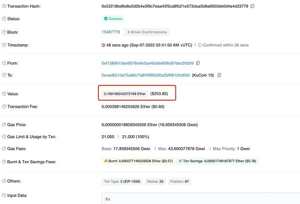 用戶可以快速的獲取賬戶的余額信息;對智能合約代碼進行安全審計,實時查詢鏈上交易費用等。一筆以太坊交易主要包含以下信息:交易hash,交易狀態,交易區塊號,交易時間戳,交易提交賬戶,交易接收賬戶,交易發送金額(案例中為0.1Eth),為完成交易所支付的交易費用及交易的單位燃料費用成本等。在使用區塊鏈瀏覽器查詢交易數據及交易詳情時,應優先選擇由區塊鏈官方開發或推薦的區塊鏈瀏覽器,通過檢查目標合約的交易安全與否規避潛在的釣魚或基于合約的授權攻擊。