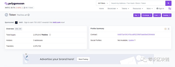 當然,也不是沒有合格的,但只能說鳳毛麟角。比如唯一藝術,隨手打開一款產品界面,其合約地址、認證標識、認證標準(合約類型)、認證網絡(什么鏈)一應俱全。當然,我也不會漏下查證這一步,從產品信息中我們可以看到,該藏品發行在Polygon公鏈上,我找到其區塊鏈瀏覽器,對其平臺上的藏品隨機進行了驗證。結果顯示,均可查證。