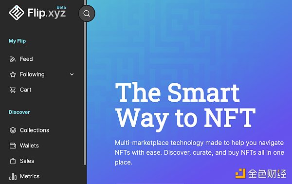 Flip.xyz 做了所有事情。可以自定義Feed以跟蹤自己感興趣的 NFT 統計數據、監控個人的投資組合、購買上市的 NFT,并從一個平臺查看趨勢指標。最重要的是,Flip 還適用于 Android 和 iOS 設備,另外,該項目目前仍處于測試階段。